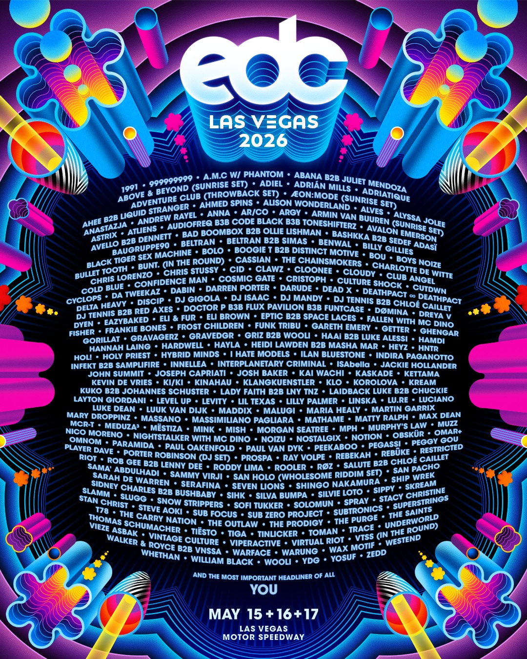 EDC 2026 Las Vegas is the flagship festival from the Los Angeles-based Insomniac Events, a global leader in dance music live shows that celebrated its 30th anniversary last year. The festival hosts artists across nine stages, each typically featuring a different style of electronic music. A few of these stages — bionicJUNGLE, quantumVALLEY, bassPOD, wasteLAND, and neonGARDEN — will all be moved this year in order to create larger dancefloors and better crowd flow.